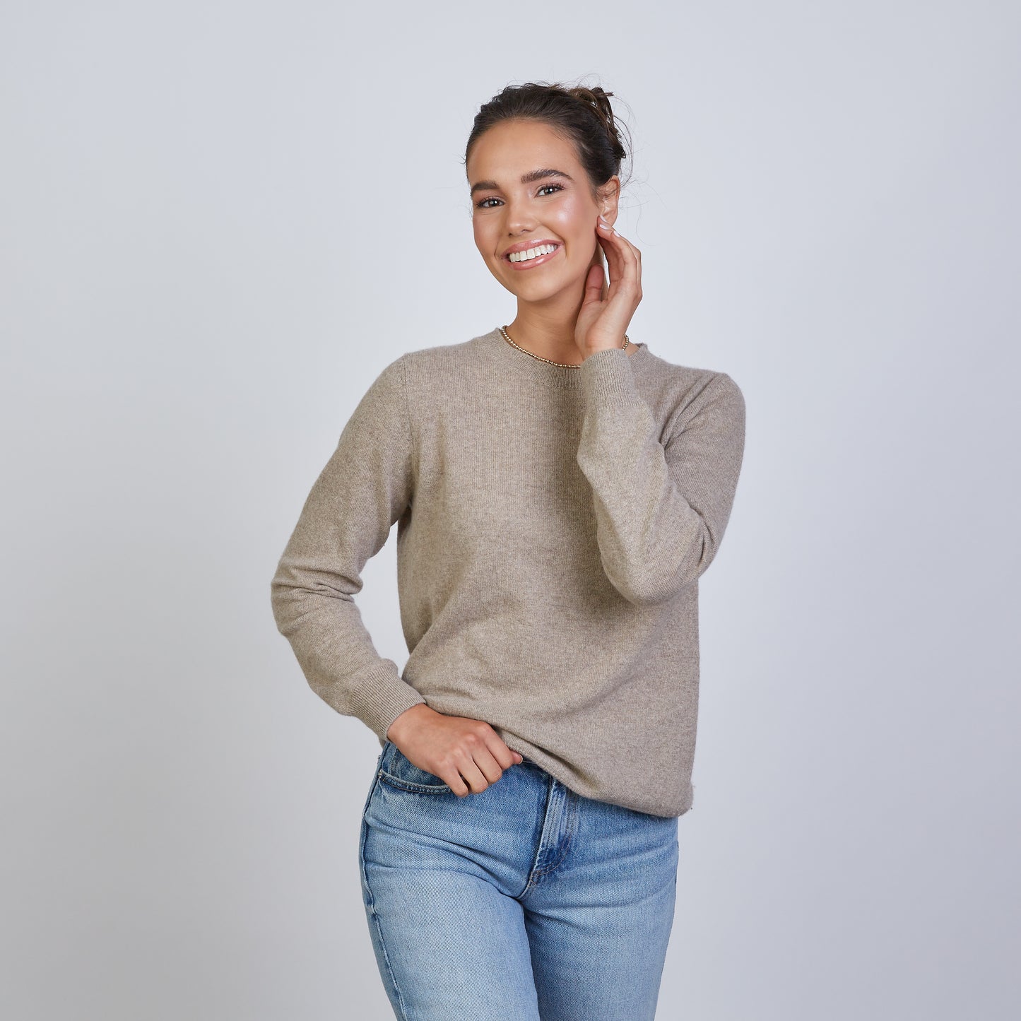 Highland Stripe 100% Mongolian Cashmere Sweater in Camel with Black