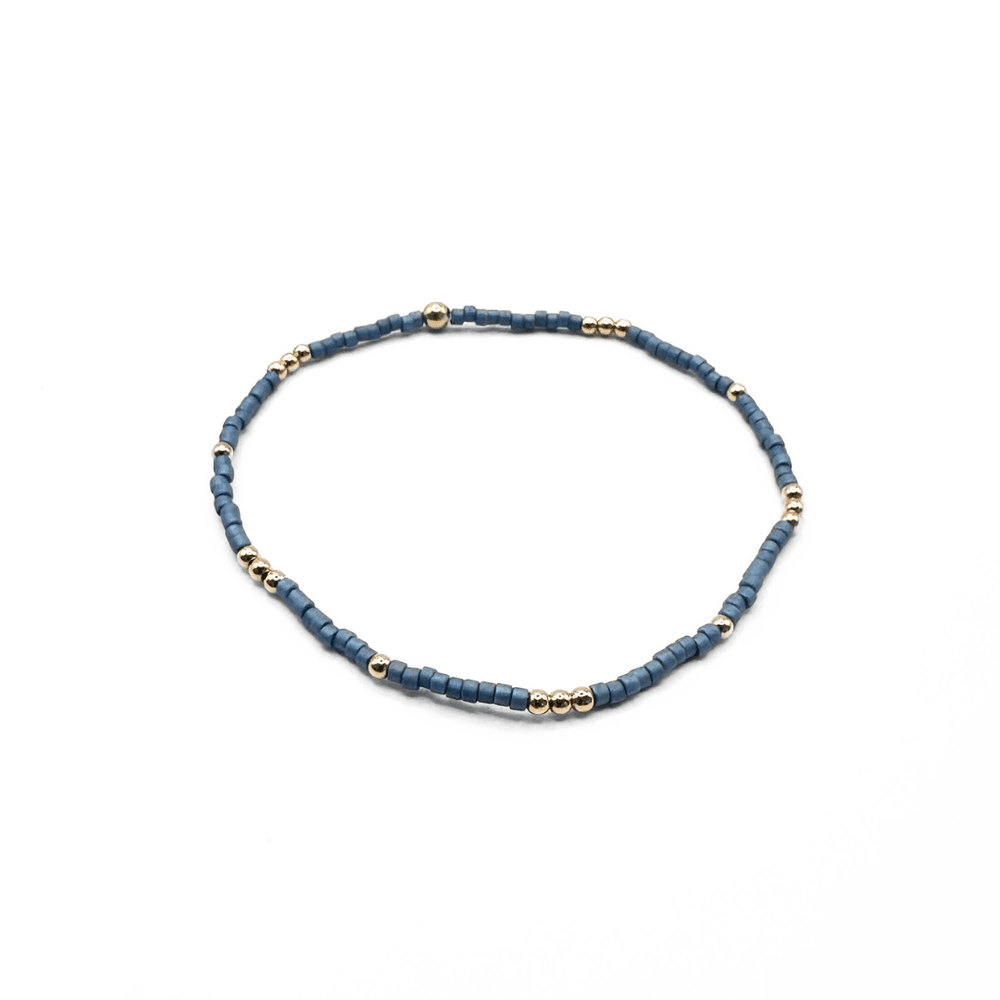 This 2mm Newport stretch bracelet features 14k gold-filled beads paired with handpicked natural colors for a refined, elegant look. Its minimalist design makes it perfect for stacking, gifting, or everyday wear. Choose from various color combinations and sizes 7.0" or 6.5" to suit your style.