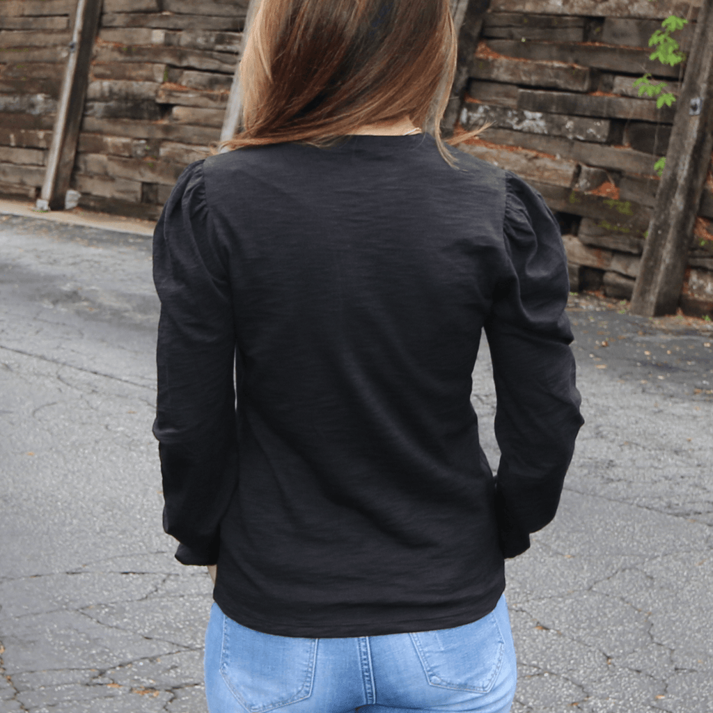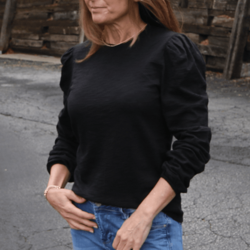 Joanie Subtle Puff Long Sleeve Tee w/Elastic Cuff in Black